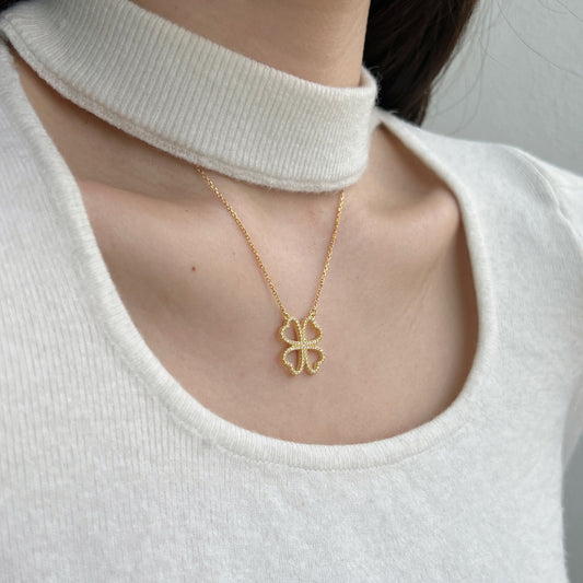 Coming Sooon18K Gold Plated Open Leaf Clover Necklace